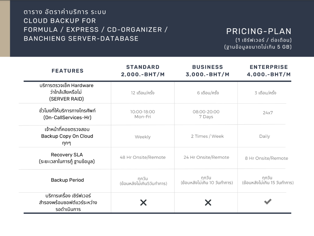server-database แบบรายปี นะคะ (แบ็คอัพขึ้น Cloud อัตโนมัติทุกวัน)